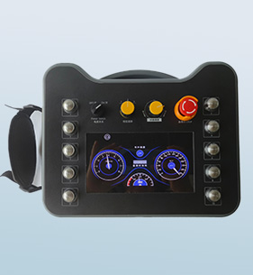 • 3个双轴摇杆+8个按键+1个两档旋转开关+1个5档旋转开关7寸触摸屏平板型工业无线遥控器